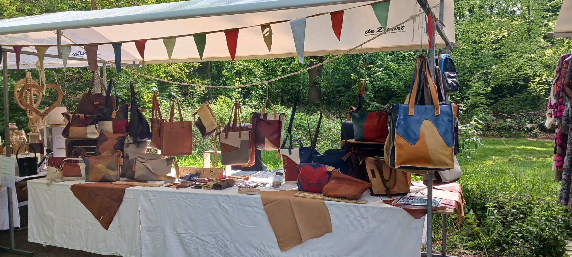 Kleine rugtasjes die ook nog te verstellen zijn, en van reststukken nieuw leer,