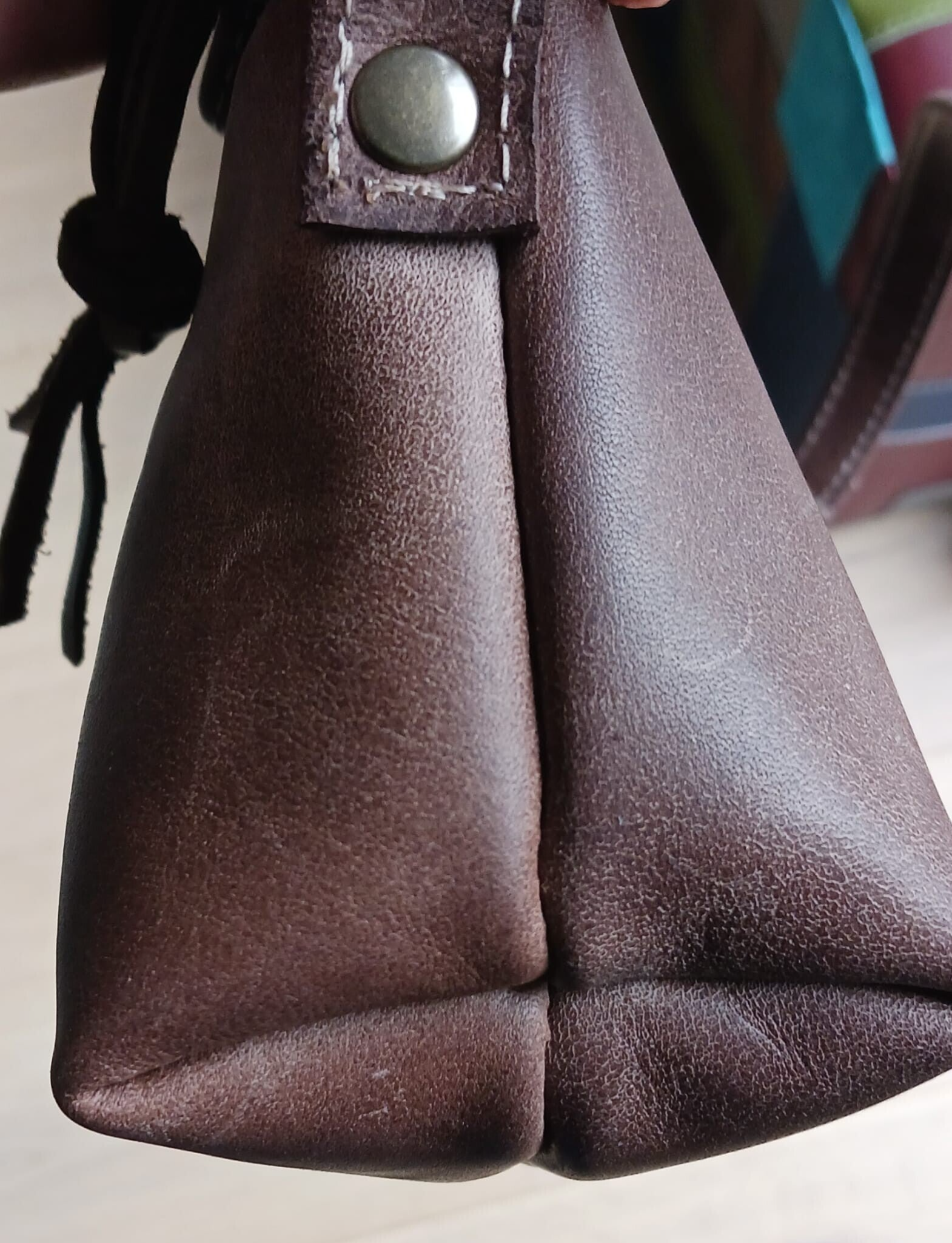 Het leer van deze tas is echt geweldig. En je weet het, iedere MoosTas is uniek, zo ook deze 'Emily Brown Beauty'. De afmeting is ±12x30cm, crossover model met verstelbare riem. En binnenin nog een klein vakje.