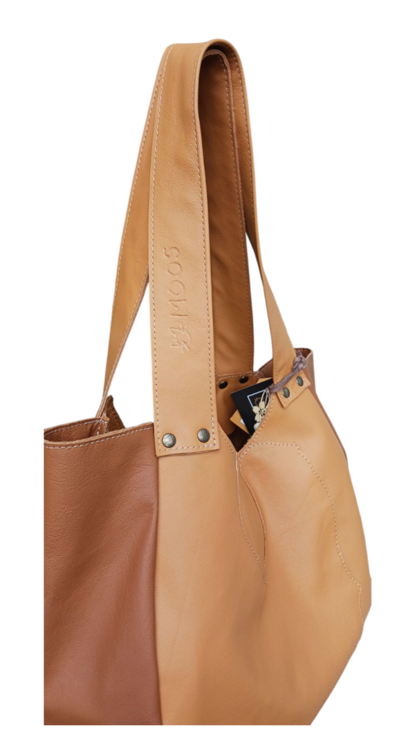 Zoek je de perfecte tas? Deze Big Bag Choco-Mocca is gemaakt van reststukken leer van de meubelmaker. Het soepele leer maakt dit een fijne tas om te winkelen. Maar deze MoosTas is ook zeker geschikt als werktas, waar je laptop prima in past. De tas meet ±30x45cm, de breedte is ±20cm, de schouderriem is ±65cmx5cm.