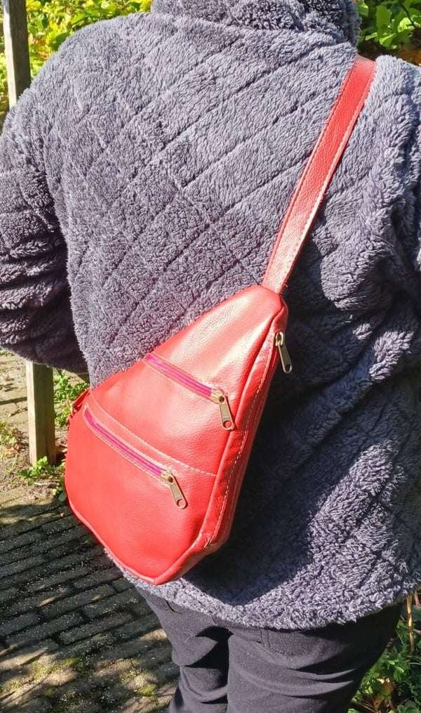 MoosTas RedLove is een crossbody model gemaakt van gerecycled leer van een oud bankstel. De tas heeft twee vakjes met rits aan de voorzijde en is aan binnenkant verrassend ruim, er past een flesje water in. De riem is verstelbaar.
