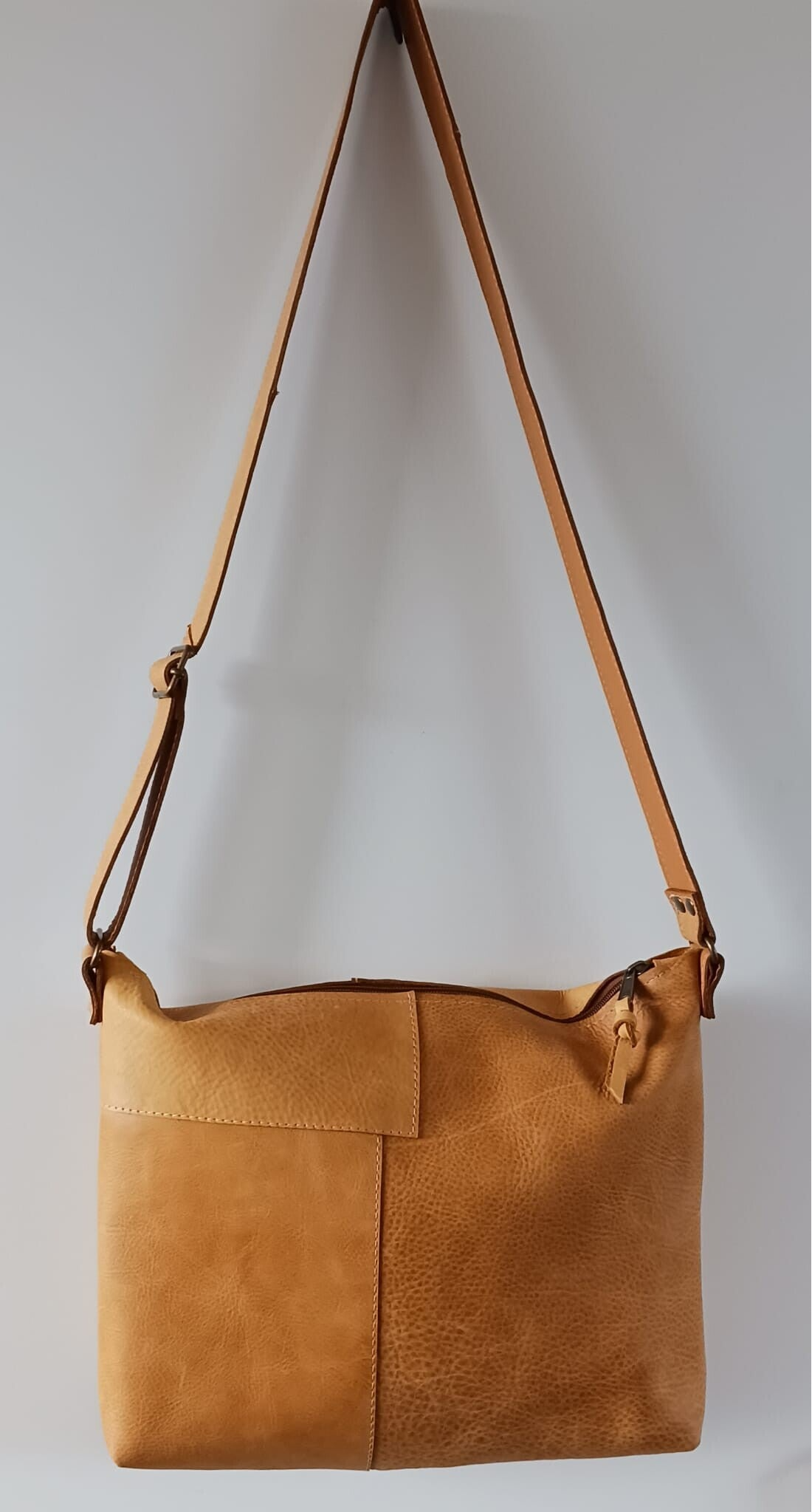 Deze Crossbody Old Ziggy is gemaakt van een sterke kwaliteit naturel leer. De tas sluit met een rits en heeft aan de binnenzijde twee vakken, waarvan één met rits. De tas meet ±32x40cm. Een royale tas, ook zeer geschikt voor kantoor/laptoptas.